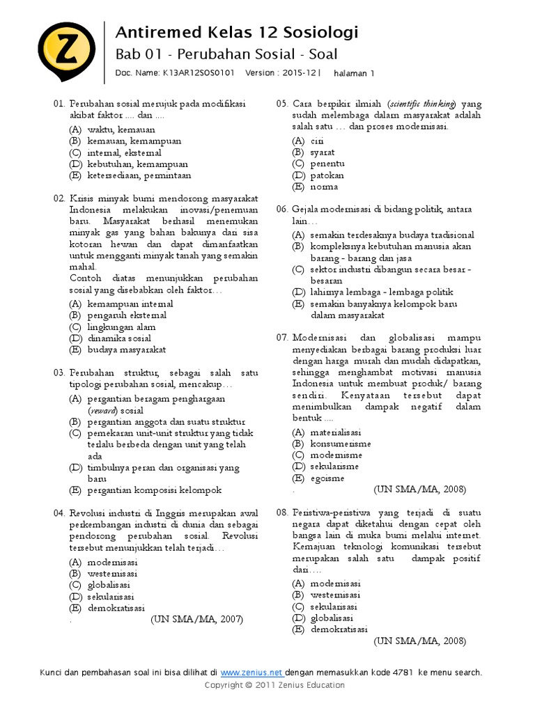 Antiremed Kelas 12 Sosiologi - . Gejala modernisasi di bidang …