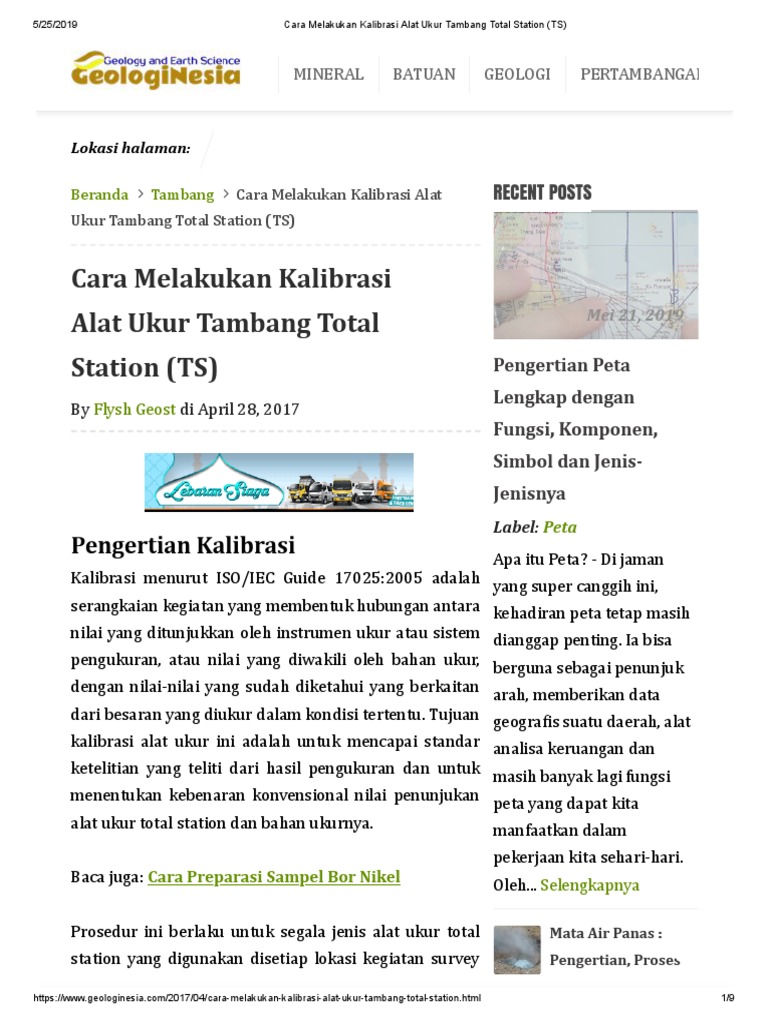 Cara Melakukan Kalibrasi Alat Ukur Tambang Total Station (TS)