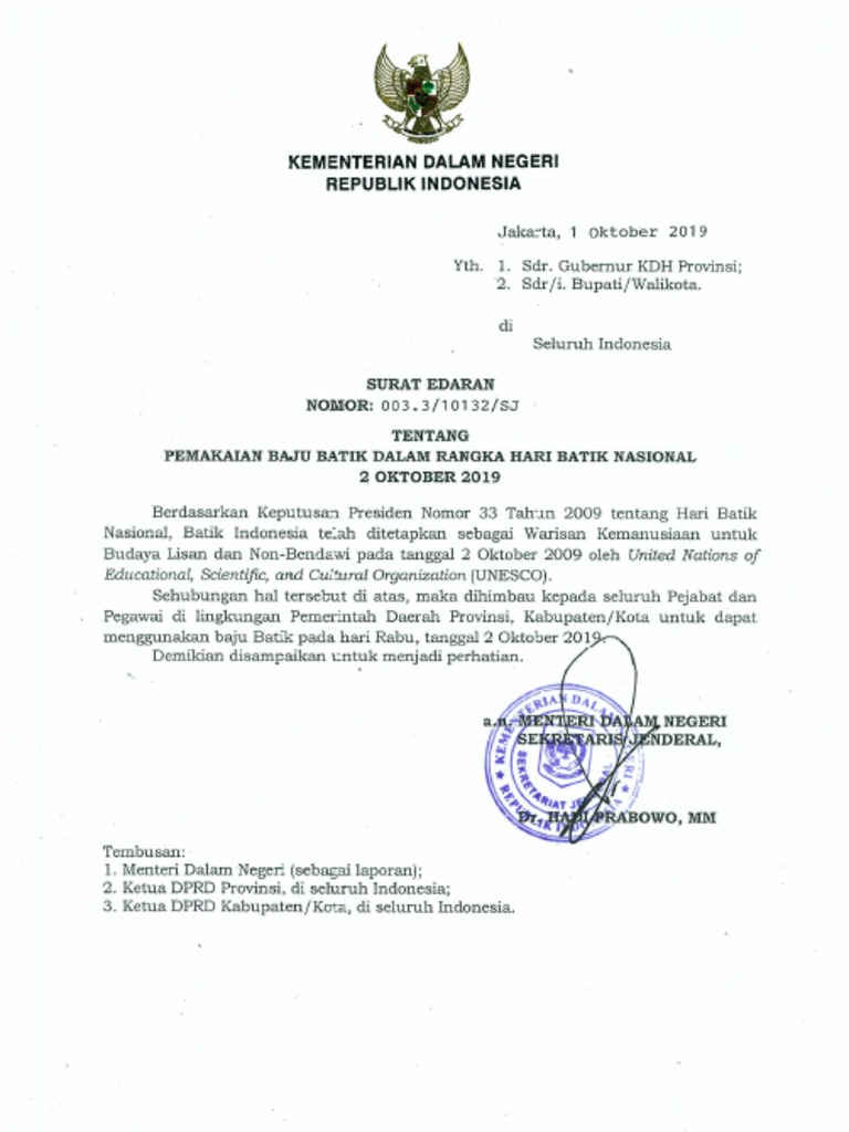 SE-Pemakaian Baju Batik Dalam Rangka Hari Batik Nasional 2 Oktober …