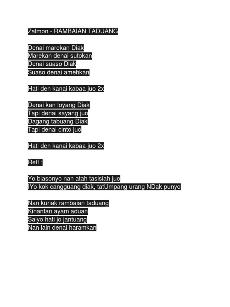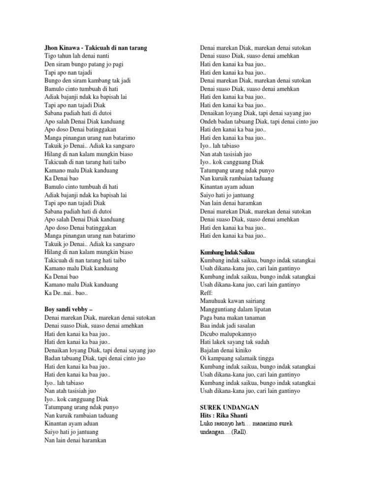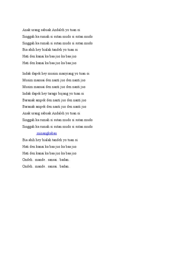 Kumpulan Lirik Lagu Minang - Apo ubeknyo - Wattpad
