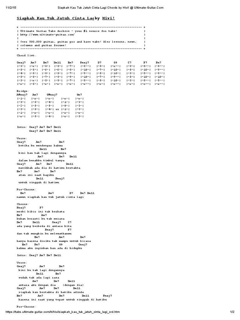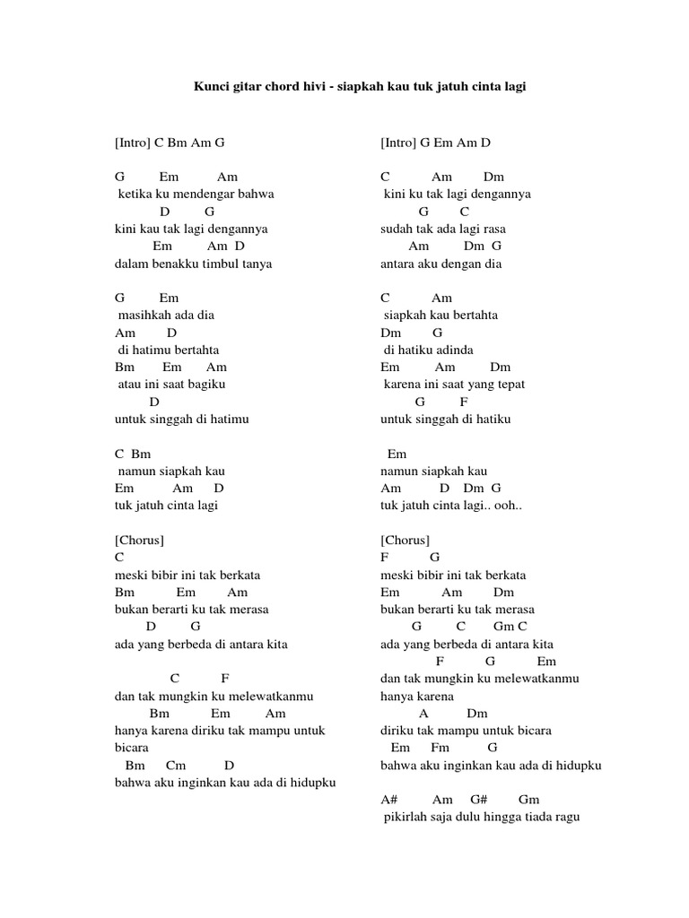 Chord Asli dan Lengkap - Siapkah Kau Tuk Jatuh Cinta Lagi - HiVi …