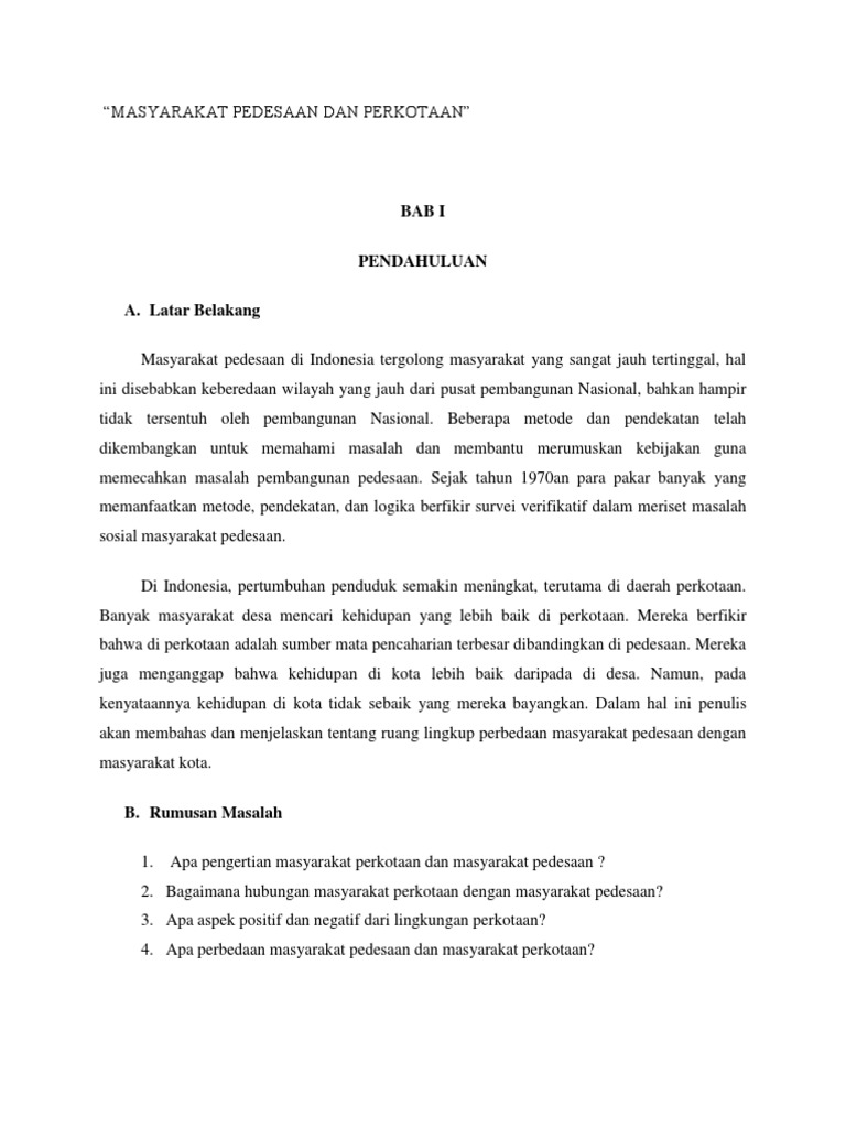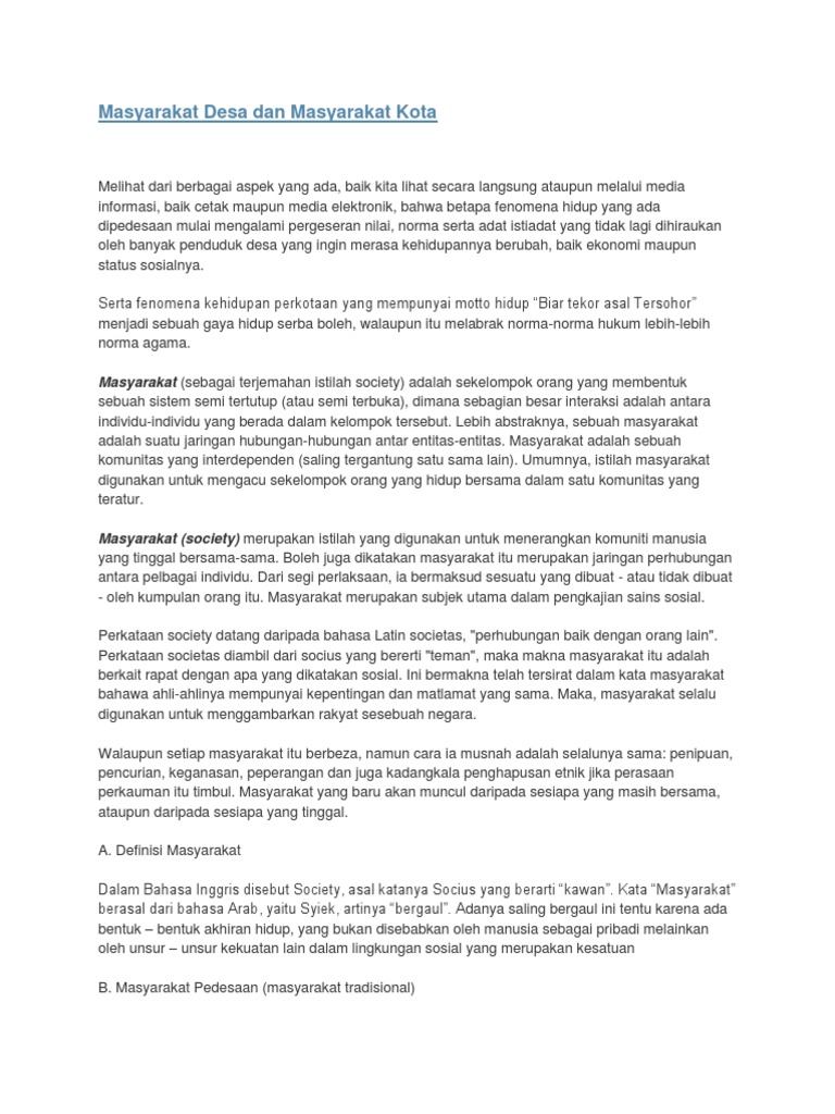 DOC) Hubungan dan Perbedaan Masyarakat Desa dan Kota ditinjau dari …