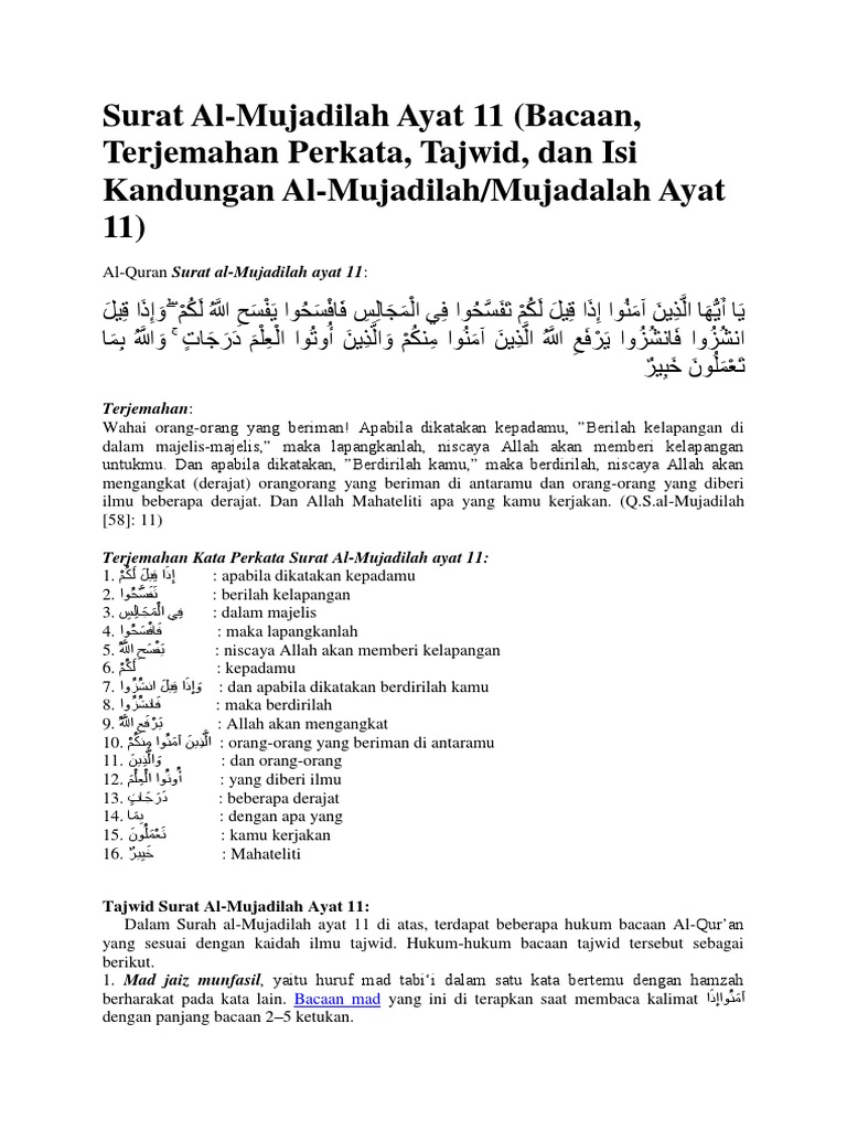 Surat Al-Mujadilah Ayat 11 (Bacaan, Terjemahan Perkata, Tajwid …