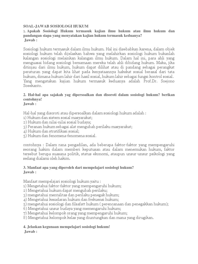 PDF) Manfaat dan Kegunaan Mempelajari Sosiologi Hukum