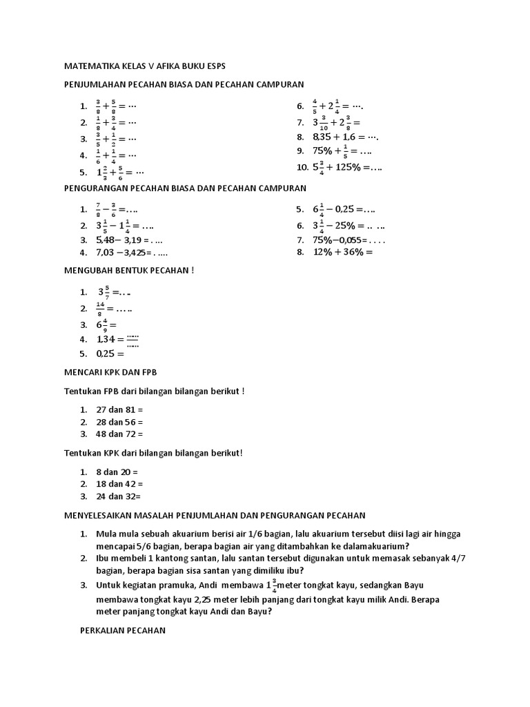 Problem Penjumlahan Dan Pengurangan Pecahan_Matematika kelas 5 …