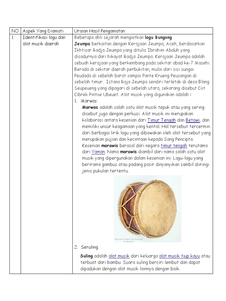 identifikasi lagu dan alat musik daerah jelaskan uraian hasil pengamatannya - Brainly.co.id