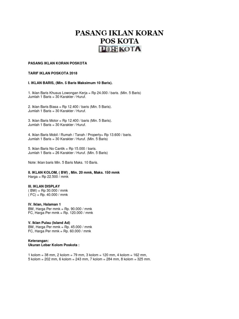 Pasang Iklan Koran Poskota | Iklan baris Poskota Harga Mulai 12rb …