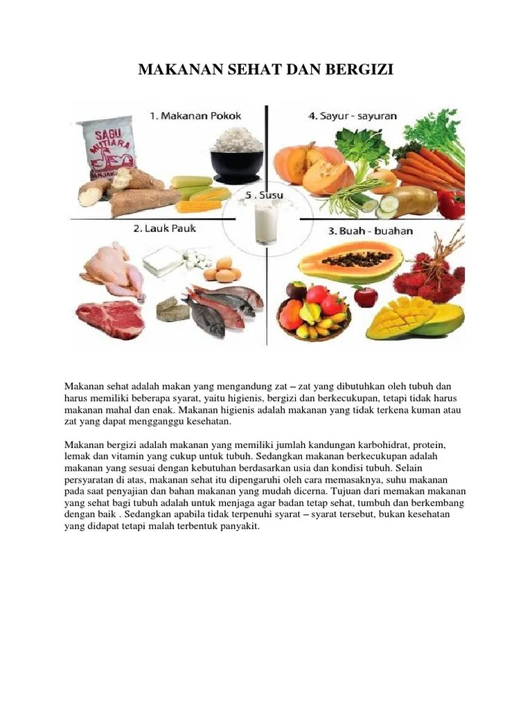 Teks Eksposisi Manfaat Makanan Sehat Bergizi Bagi Tubuh - Guru …