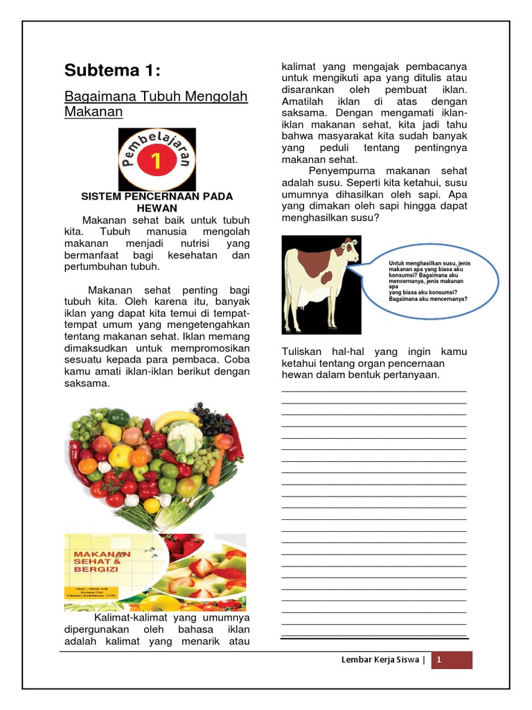 Kelas 5, Tema 3, Subtema 1, Pembelajaran 1. Iklan Makanan Sehat …