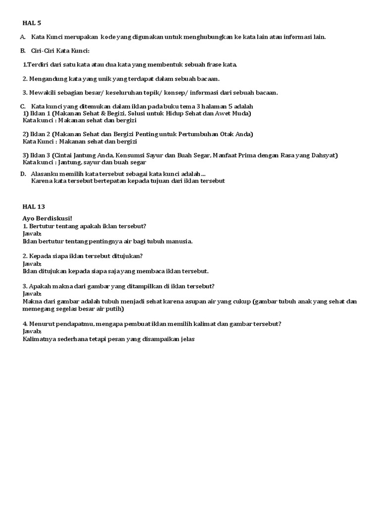 Kunci Jawaban Buku Tematik SD Kelas 5 Tema 3 Makanan Sehat …