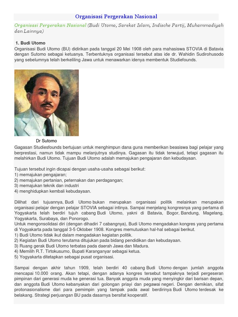 Organisasi Pergerakan Nasional (Budi Utomo, Sarekat Islam …