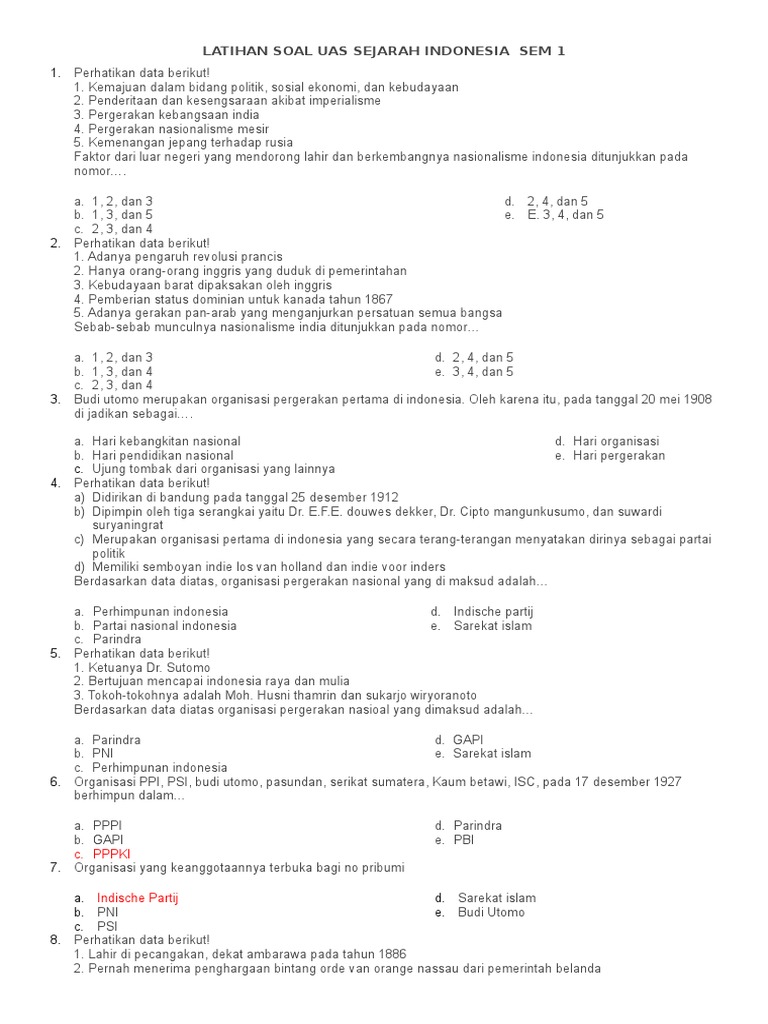 Latihan Soal Sejarah Bab Strategi Pergerakan Nasional Indonesia …