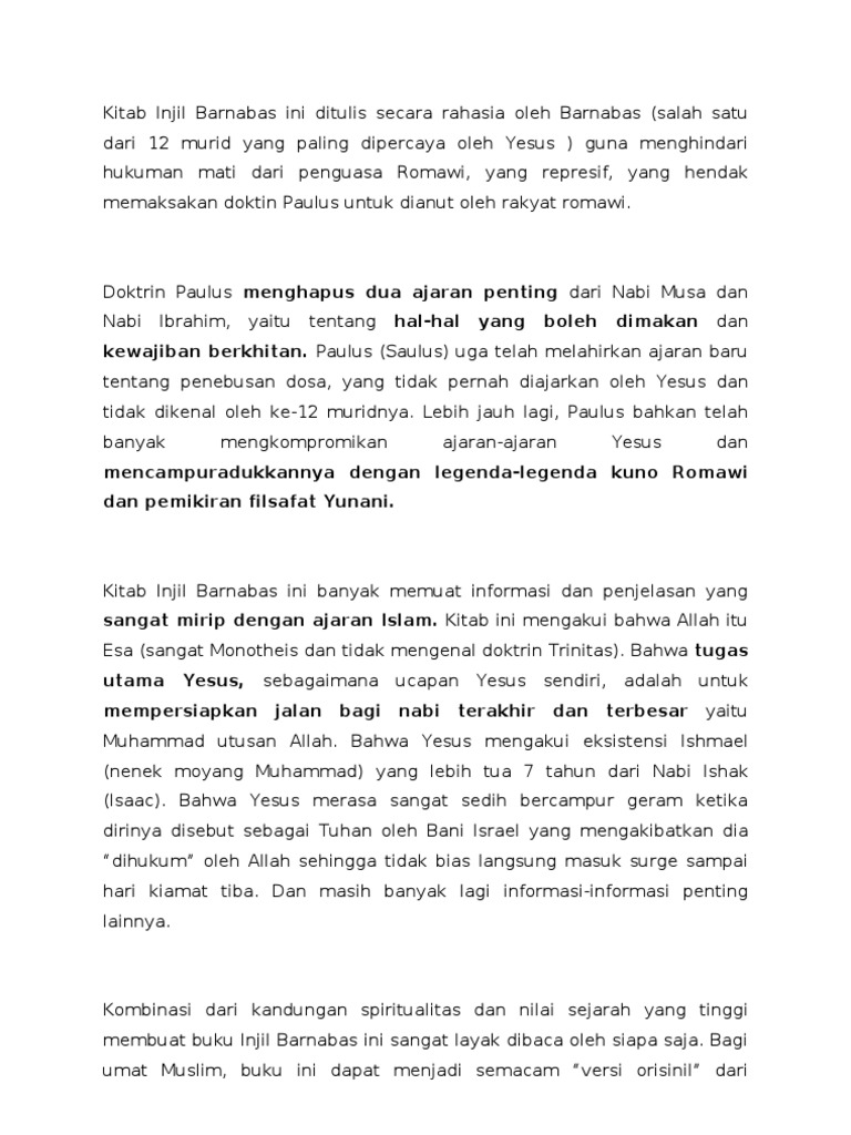 Isi Kandungan Injil Barnabas PDF - bermomf
