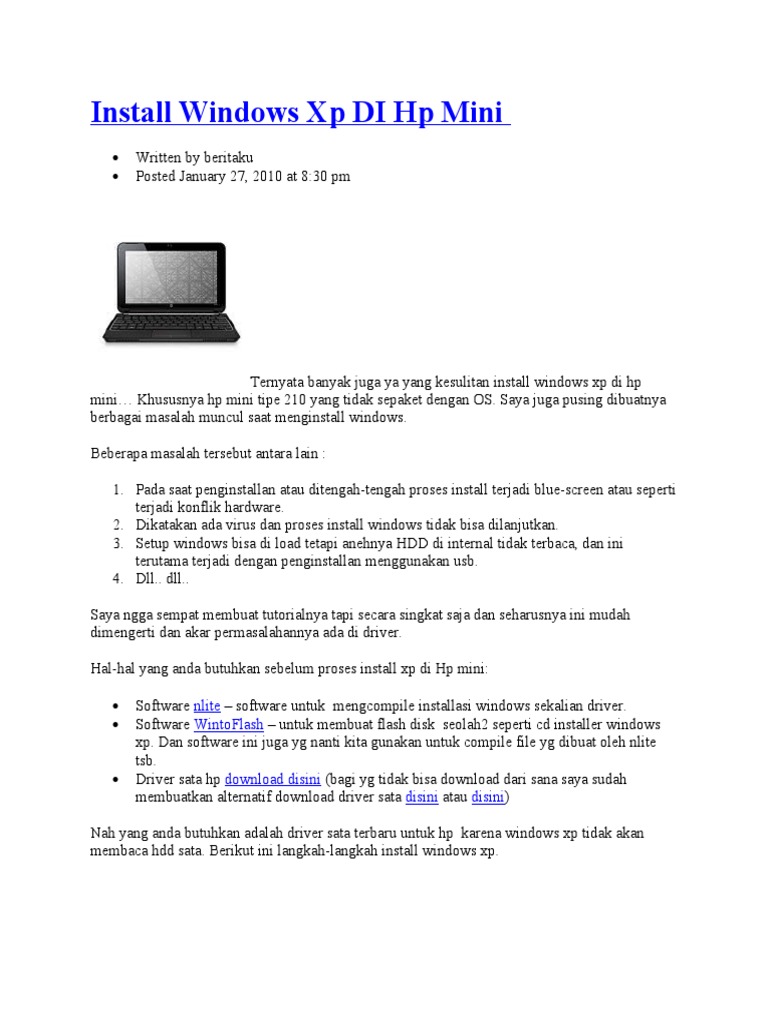 Cara Instal Windows Xp Pada Hp Mini 110 Notebook Pc - openpirate’s …