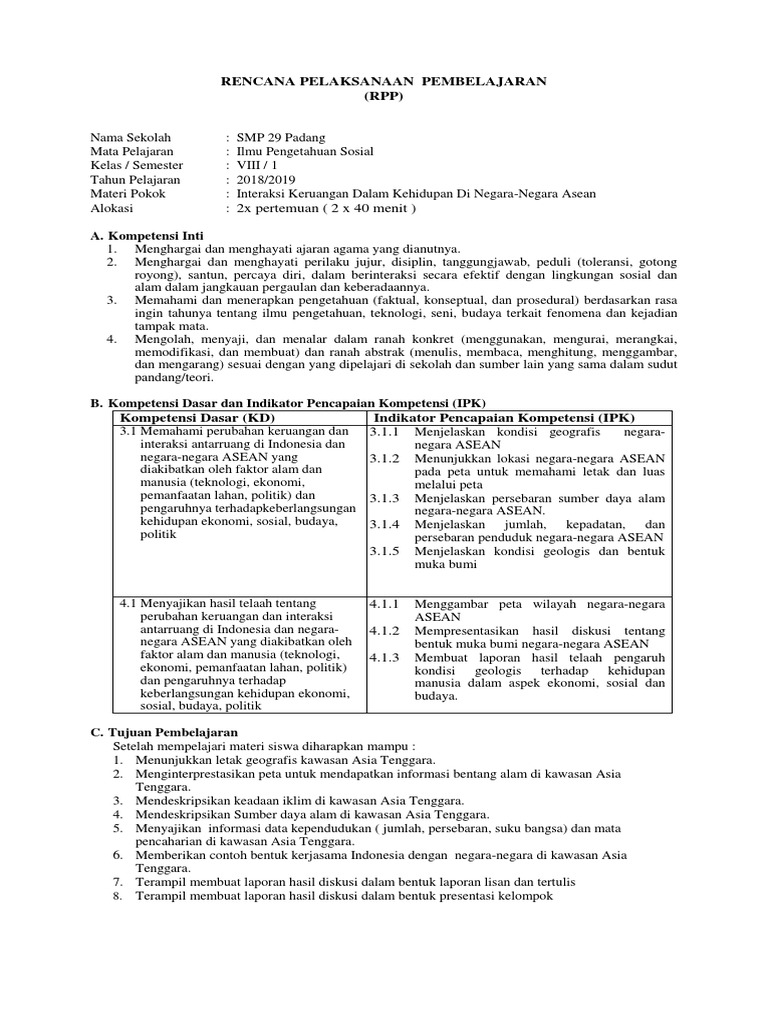 Download Rpp Ips Kelas 8 Materi Interaksi Keruangan Dalam …