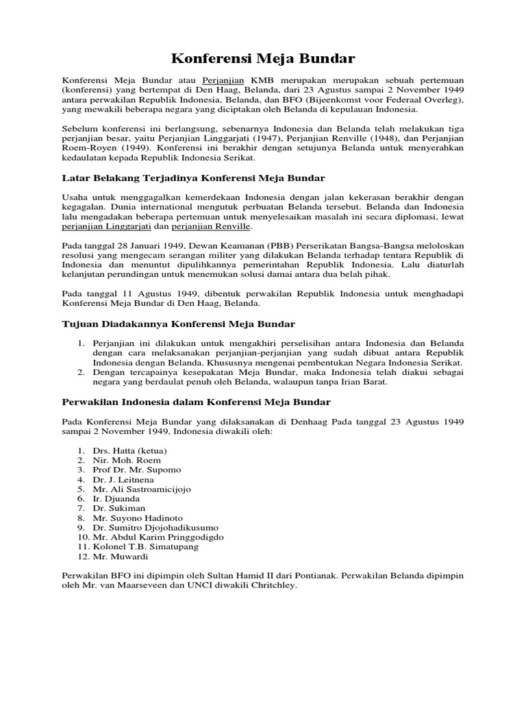 Konferensi Meja Bundar: Latar Belakang, Tokoh, Isi dan Dampak …