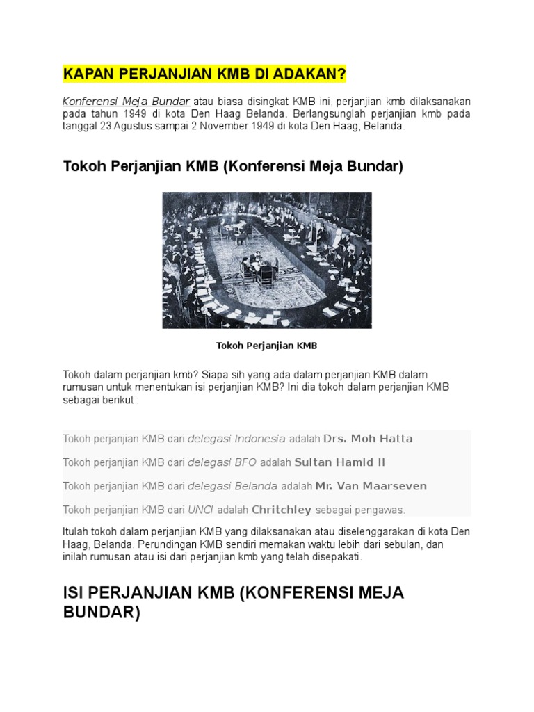 Perjanjian KMB: Latar Belakang, Jalannya, Hasil dan Dampak