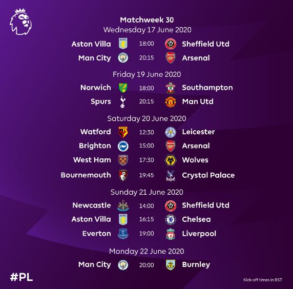 Jadwal Pertandingan Jumat, 19 Juni 2020 in 2020 | Manchester city …
