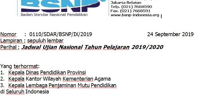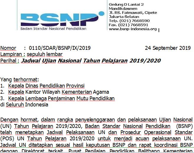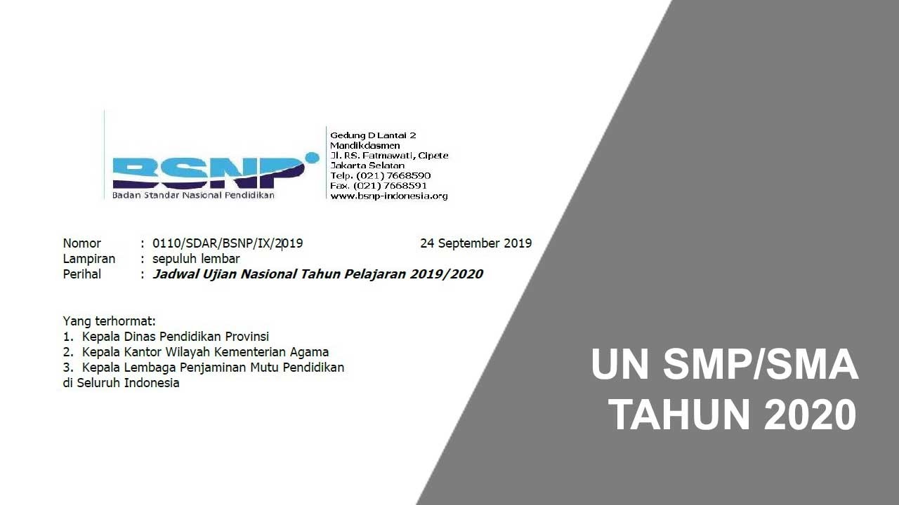 Pengantar Jadwal Ujian Nasional Tahun Pelajaran 2019/2020 – RUANG …