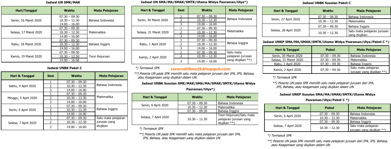 Info UN : Jadwal UN (UNBK dan UNKP) SMA/MA/SMK/Paket C Tahun …