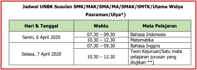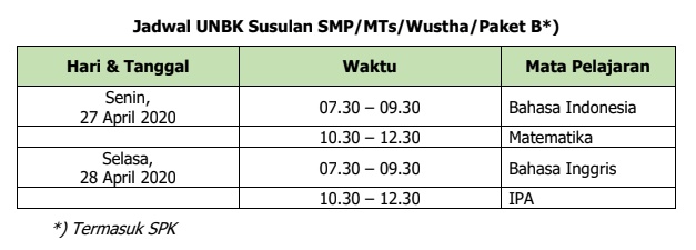 Jadwal UN UNBK UNKP Susulan SMP MTS SMA MA SMK MAK Tahun 2020 …