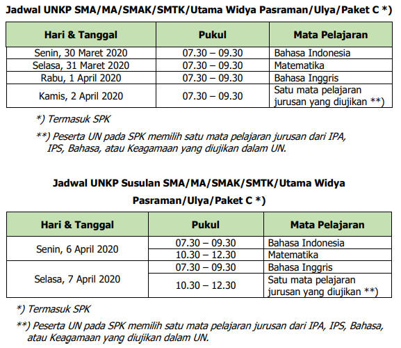Jadwal Ujian Nasional UNBK dan UNKP SMA MA Paket C Tahun 2020