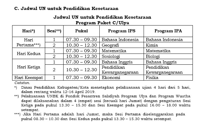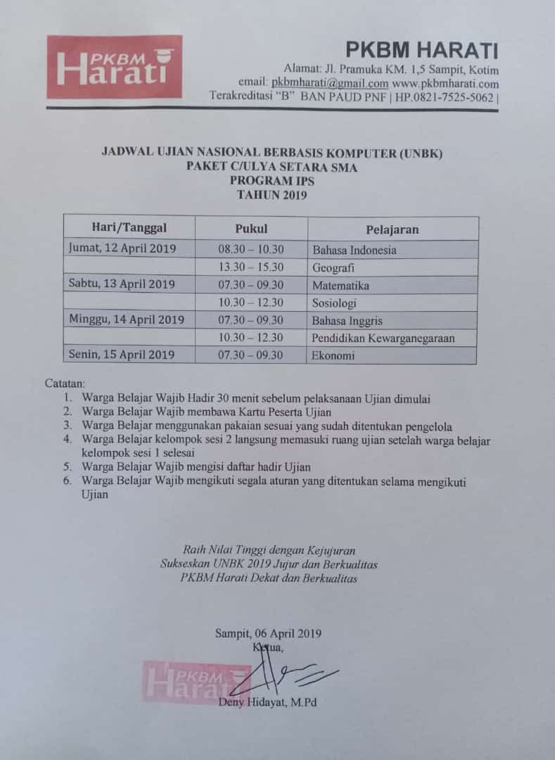PKBM MDC - Jadwal Penting UN Paket C 2019. | Facebook