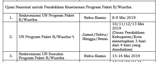 Jadwal Kegiatan USBN dan UNBK Paket C dan Paket B Tahun 2019 …