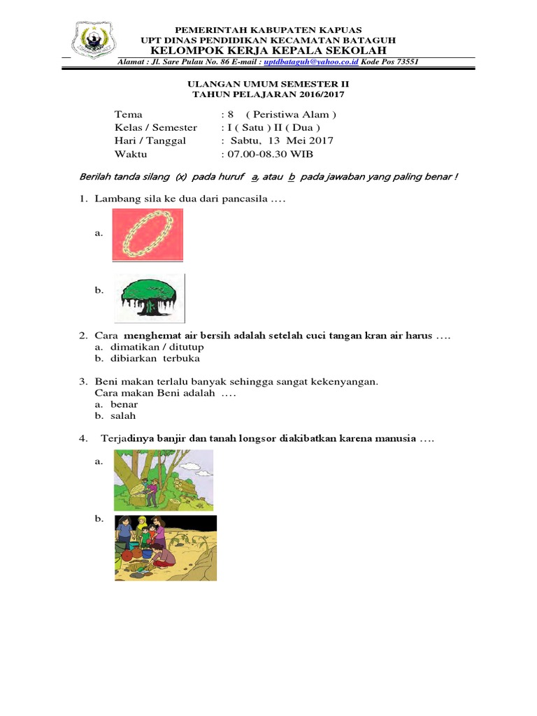 Lengkap - 30+ Contoh Soal UAS / PAS untuk kelas 1 SD/MI Tema 8 K13 …