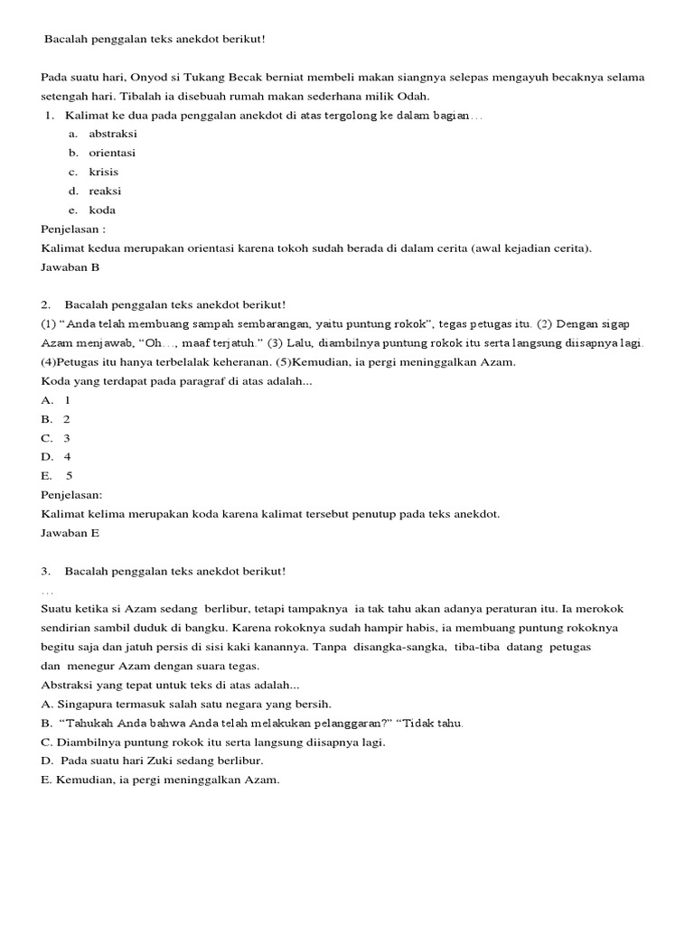 Soal dan Kunci Jawaban Teks Anekdot - sobatilmu.com