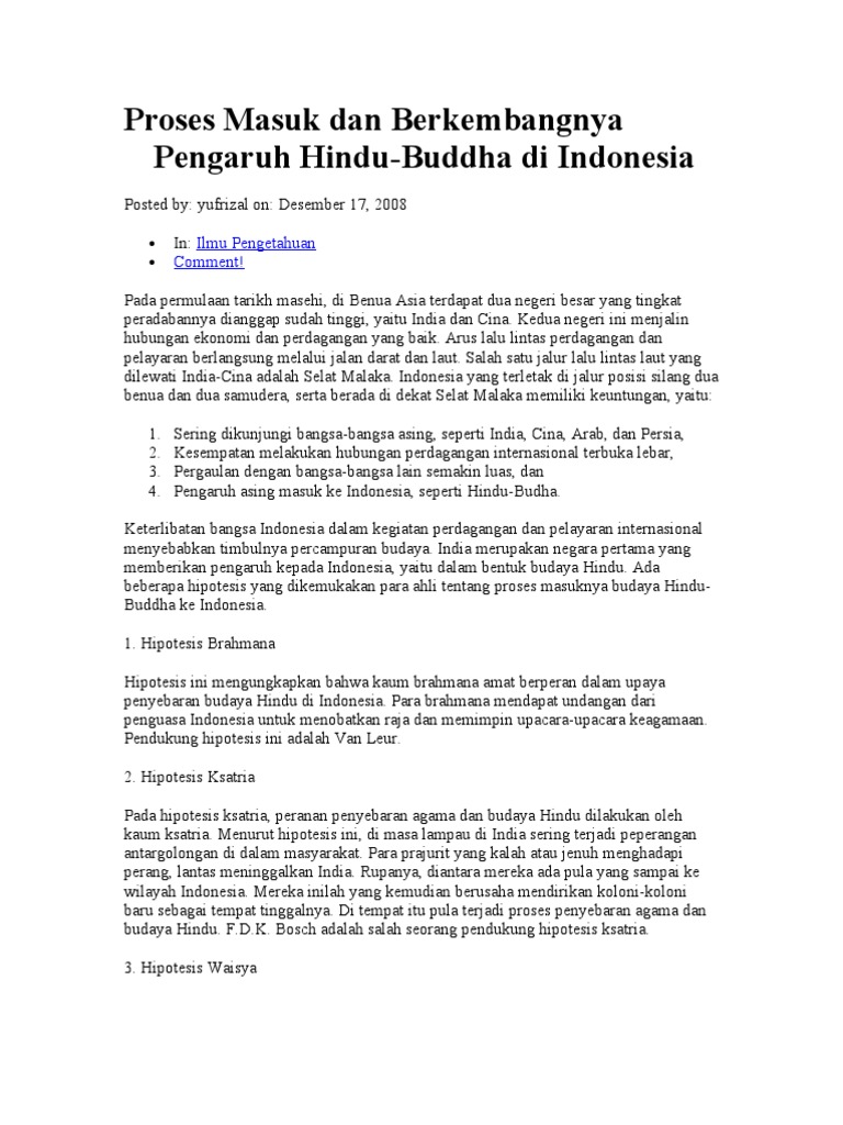 Proses Masuk Dan Berkembangnya Agama Hindu Budha Di Indonesia …