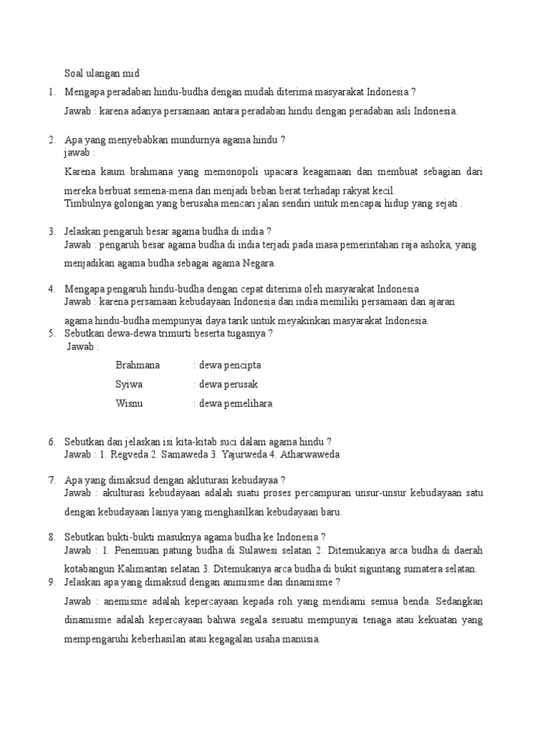 1. Sebutkan bukti-bukti masuknya agama dan kebudayaan Hindu-Budha …