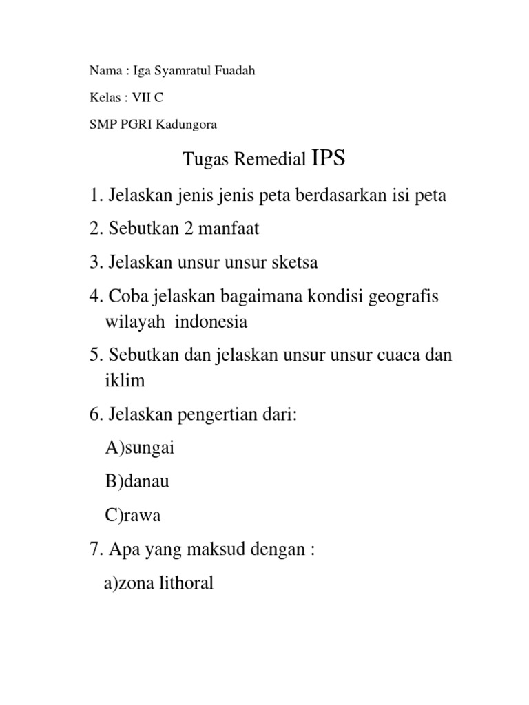 Nama: Iga Syamratul Fuadah Kelas: VII C SMP PGRI Kadungora
