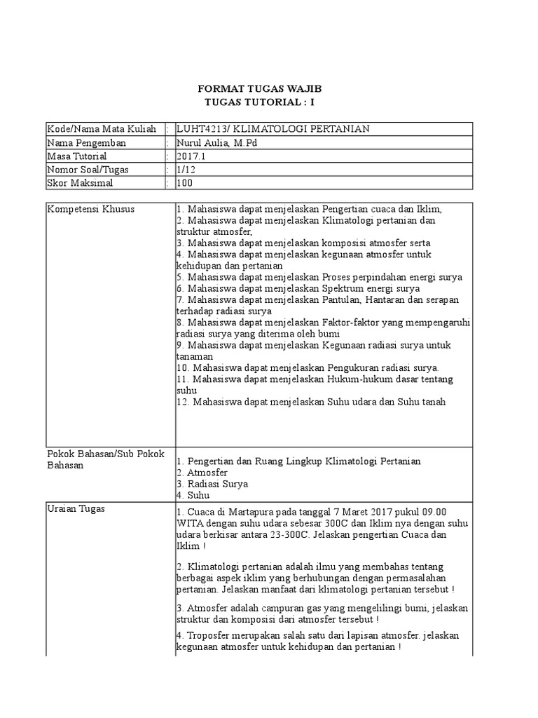 Format Tugas Wajib Tugas Tutorial: I