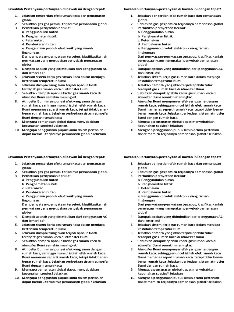 10 Soal dan Jawaban Pemanasan Global SMP Kelas 7 Kurikulum 2013 …