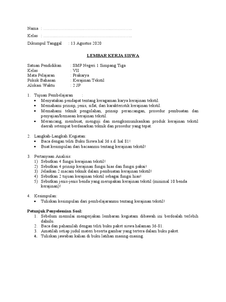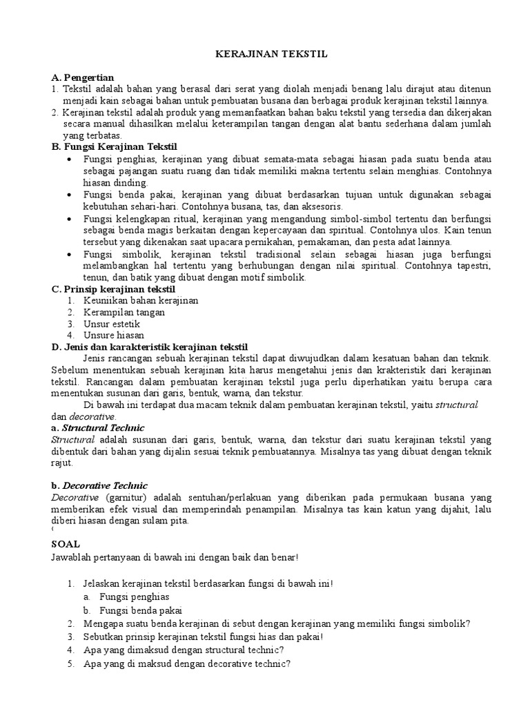 Contoh Soal Dan Jawaban Kelas Vii Tentang Kerajinan Tekstil – IlmuSosial.id