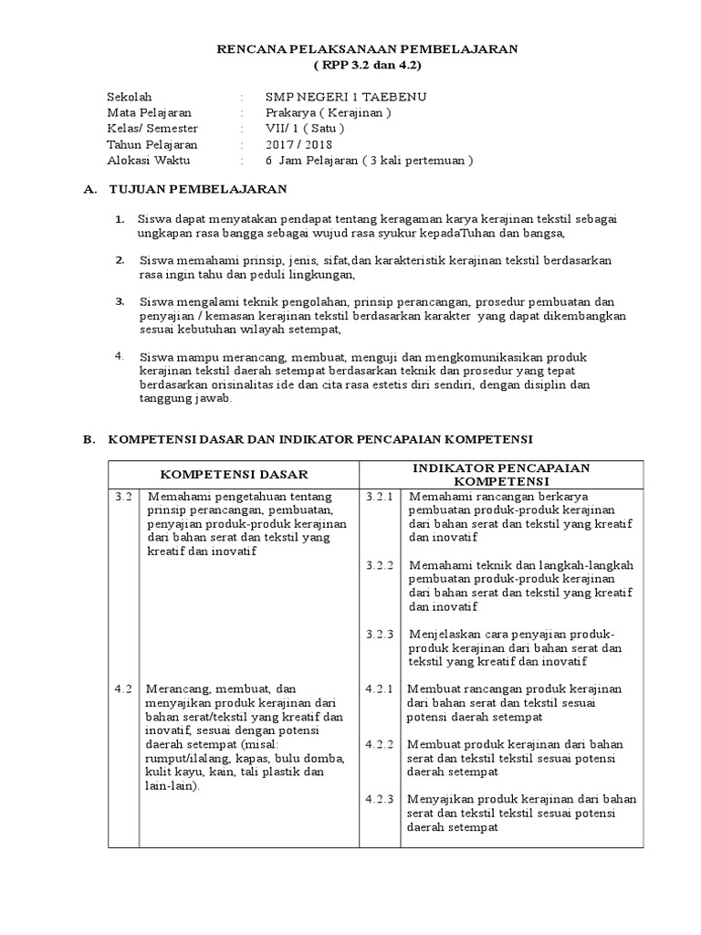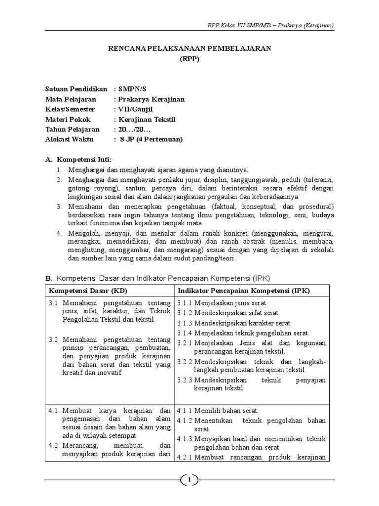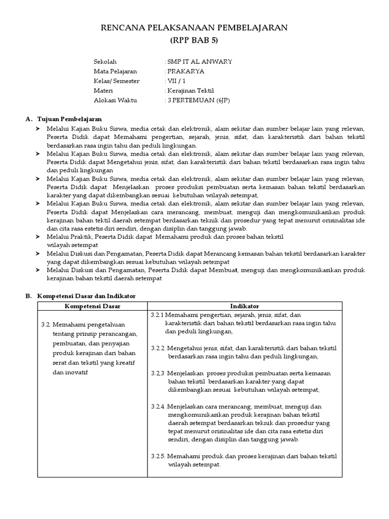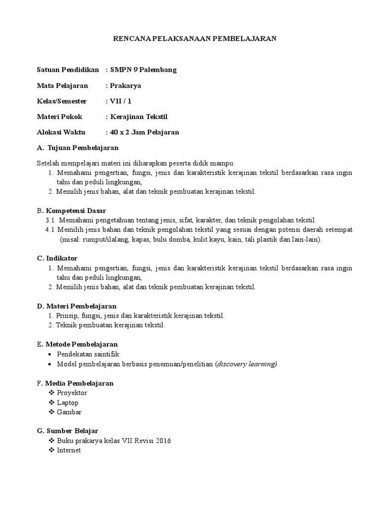 Rpp Prakarya Kerajinan Tekstil