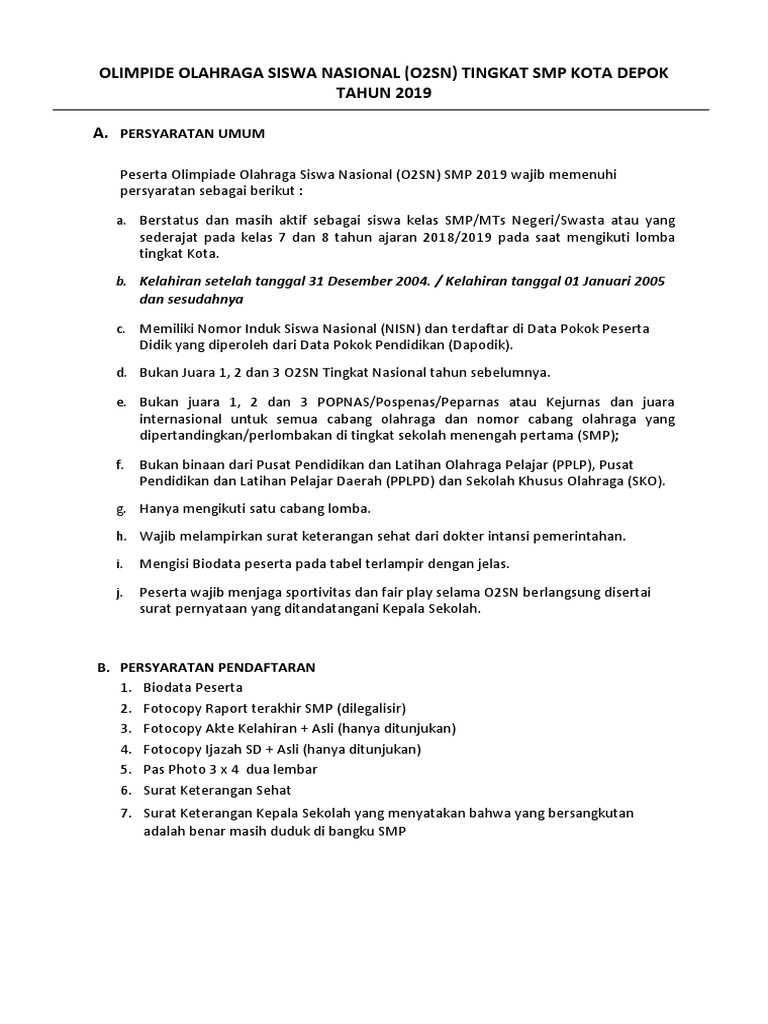 Juklak Juknis O2sn Smp Tahun 2020 - Dunia Edukasi