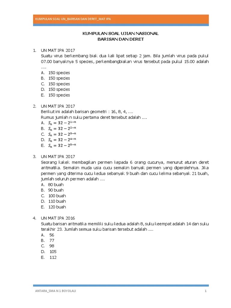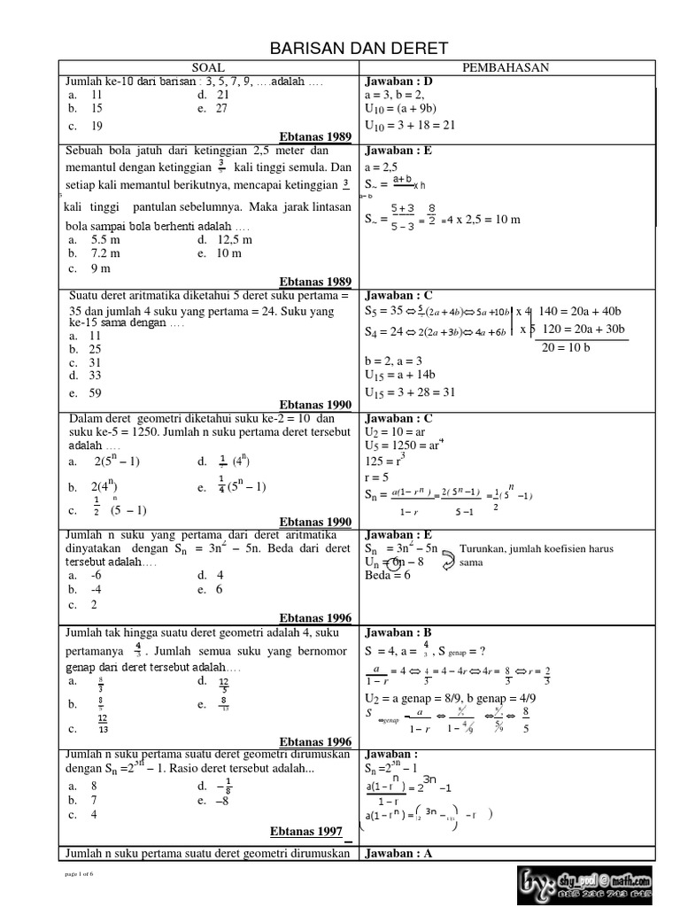 Barisan Dan Deret Aritmatika Geometri Tak Hingga Beserta Contoh S …