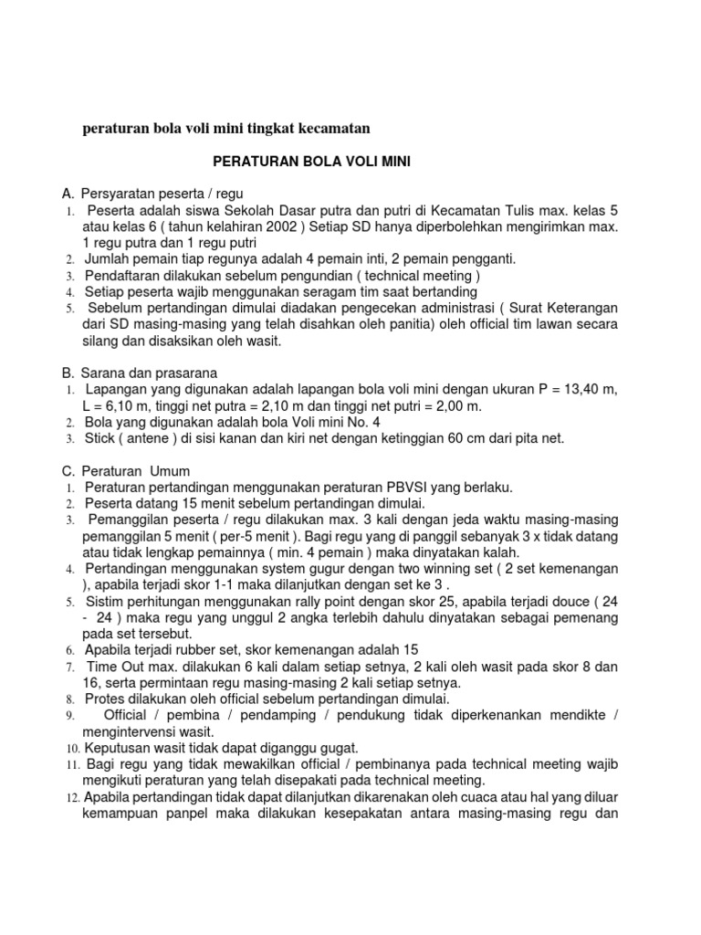 Peraturan Bola Voli Mini Tingkat Kecamatan
