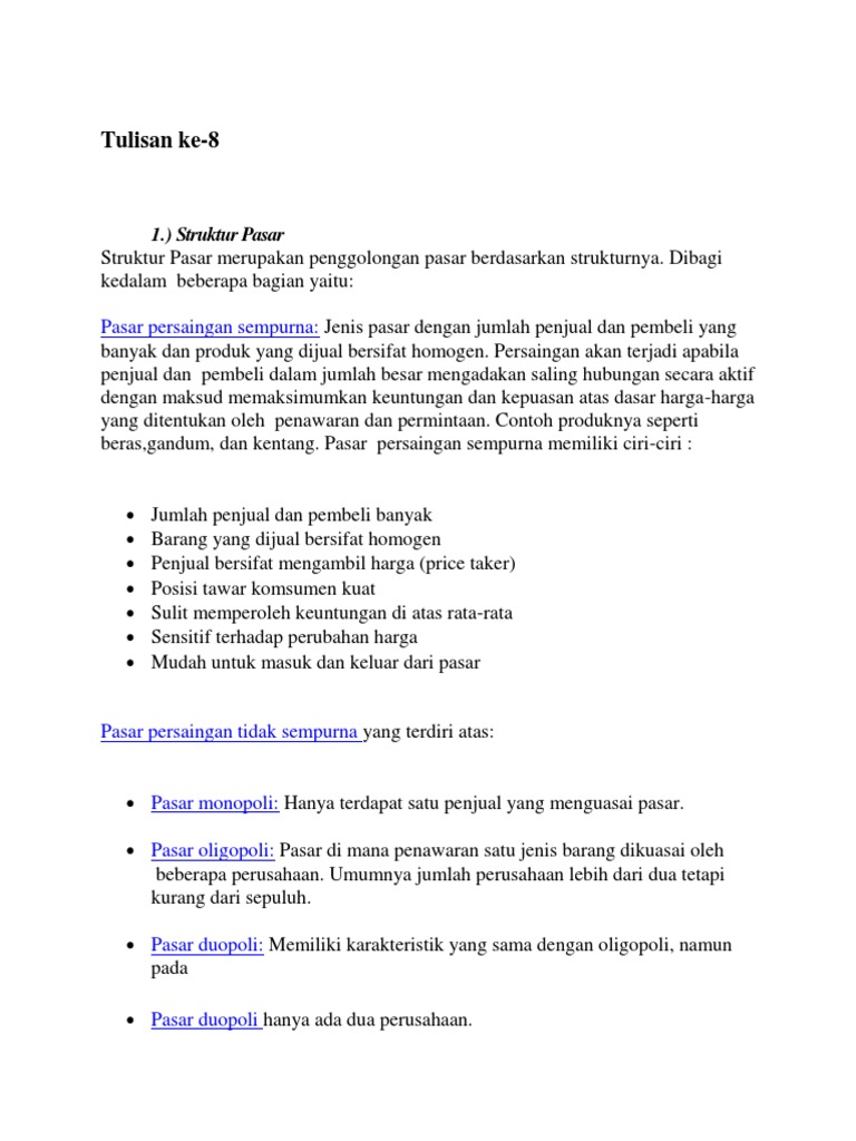 Jenis Struktur Pasar dan Faktornya