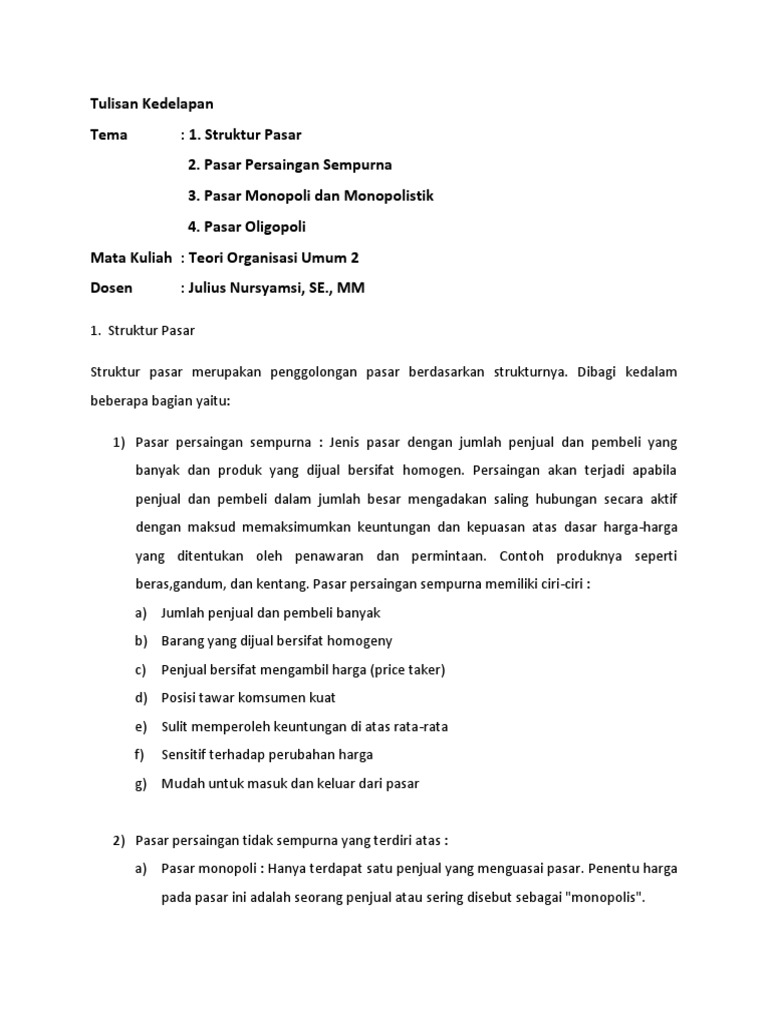 Pengertian pasar monopoli, monopolistik dan oligopoly – Hasan Mustofa