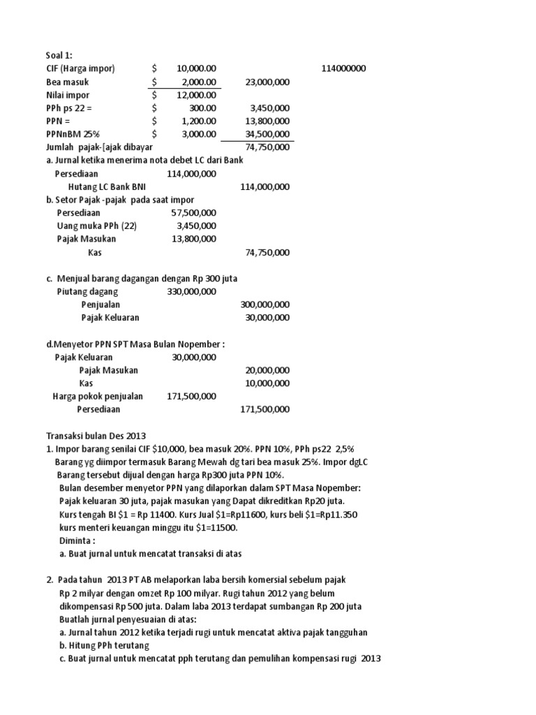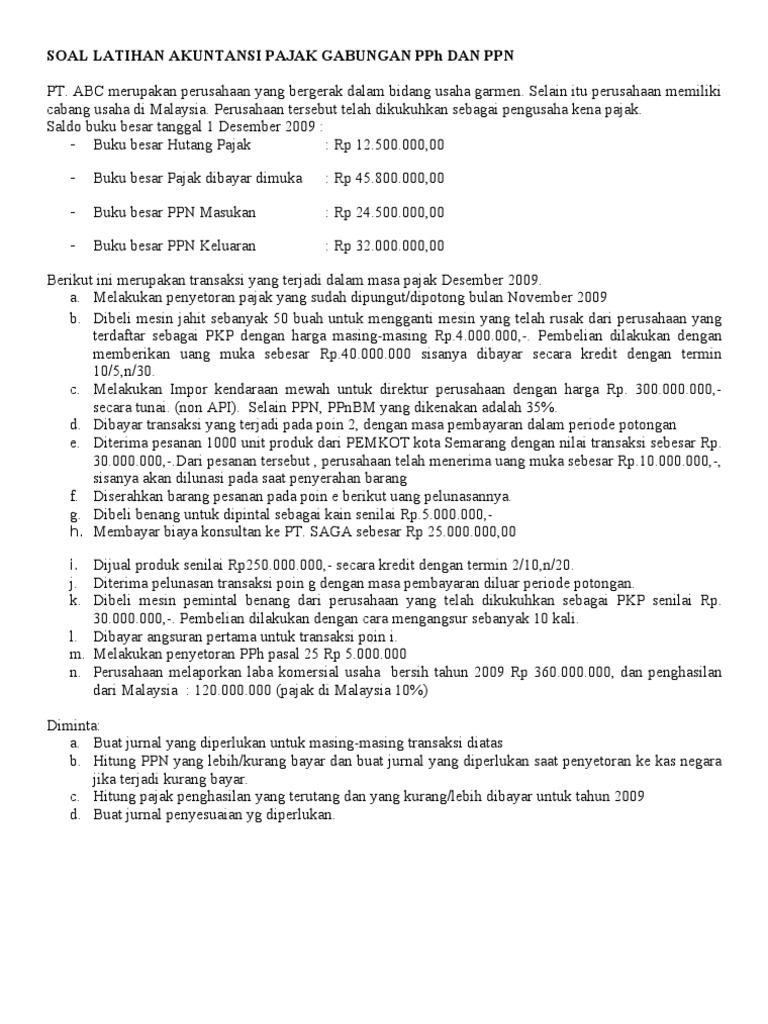 Soal Latihan Akuntansi Pajak Gabungan Pph Dan Ppn