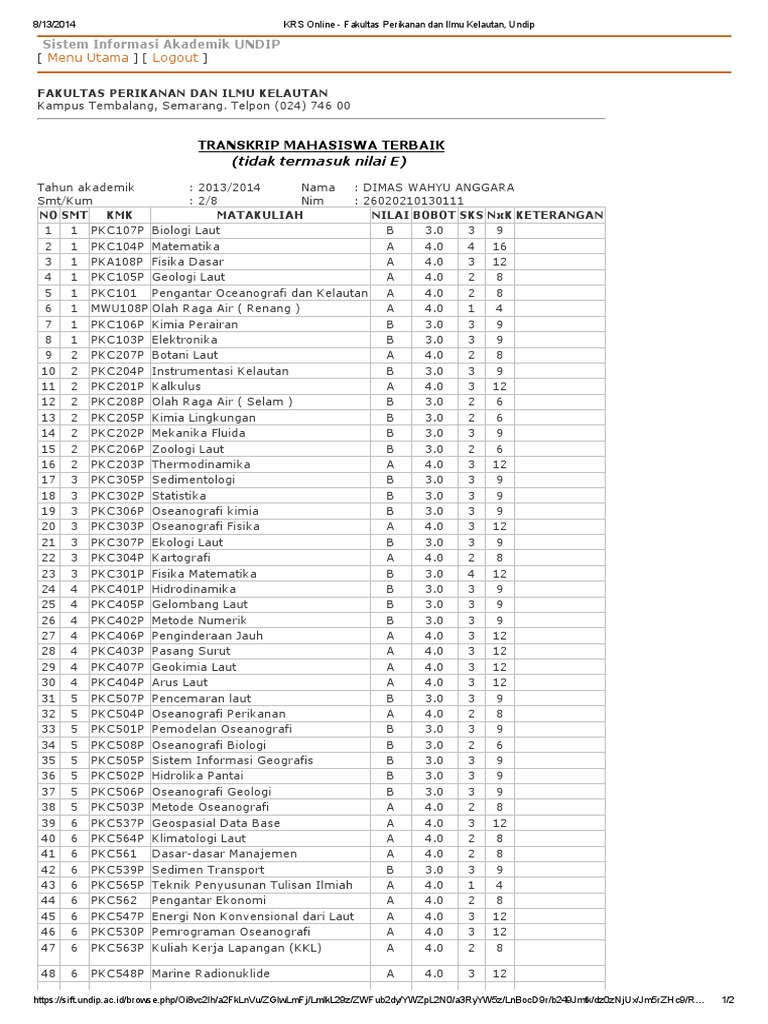 KRS Online - Fakultas Perikanan Dan Ilmu Kelautan, Undip