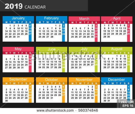 Kalender dinding 2019 Stok Vektor, Ilustrasi Kalender dinding 2019 …