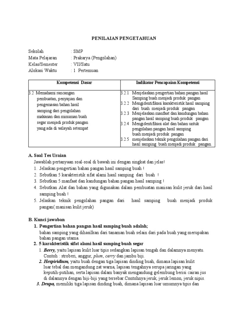 Rpp prakarya kelas vii pengolahan hasil samping buah