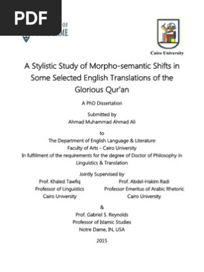 A Stylistic Study of Morpho-semantic Shifts in Some Selected English Translations of the Glorious Qur’an.pdf | Translations | Quran