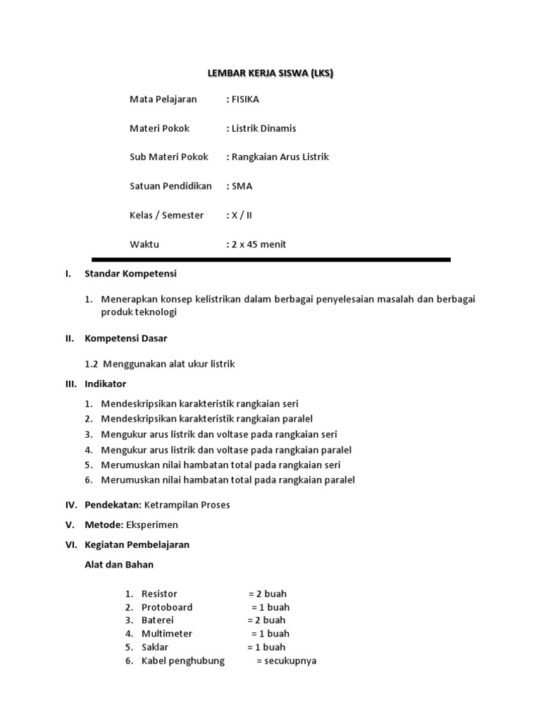 LKPD karakteristik rangkaian seri dan paralel worksheet