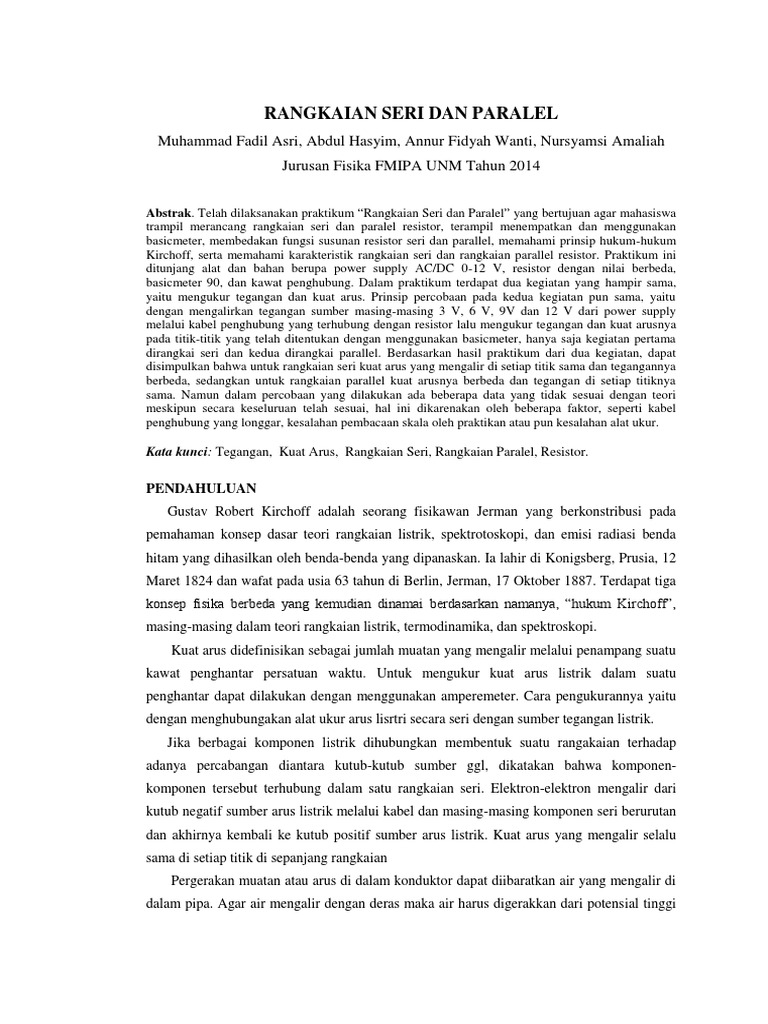 DOC) Laporan Fisika Dasar II Rangkaian Seri dan Paralel | Wahdini Ramli - Academia.edu