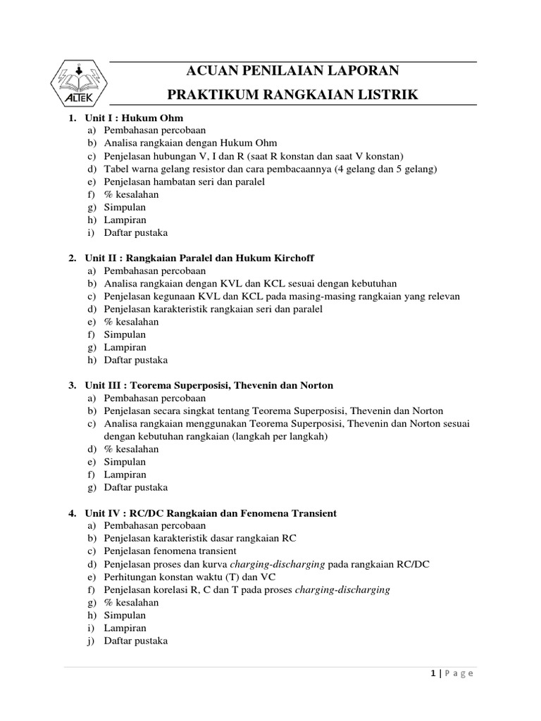 Acuan Penilaian Laporan Praktikum Rangkaian Listrik - [PDF Document]